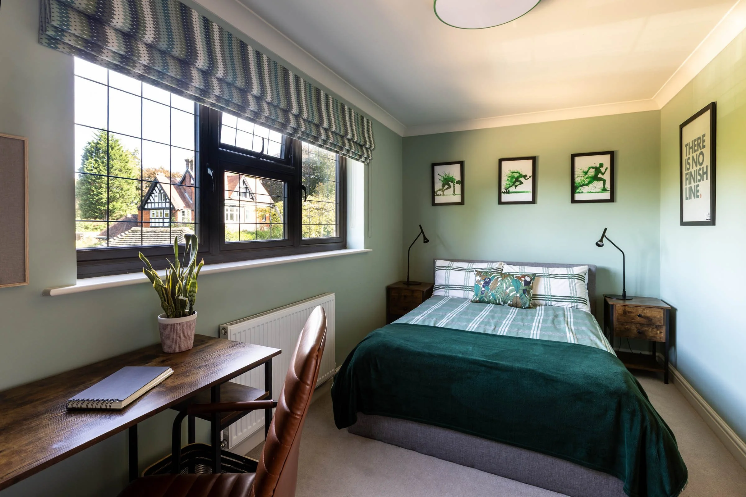 The eldest son benefits from the largest room with an ensuite bathroom. However, on occasion he may need to vacate to let guests use the room, so we kept that in mind with a more flexible, mature scheme.
